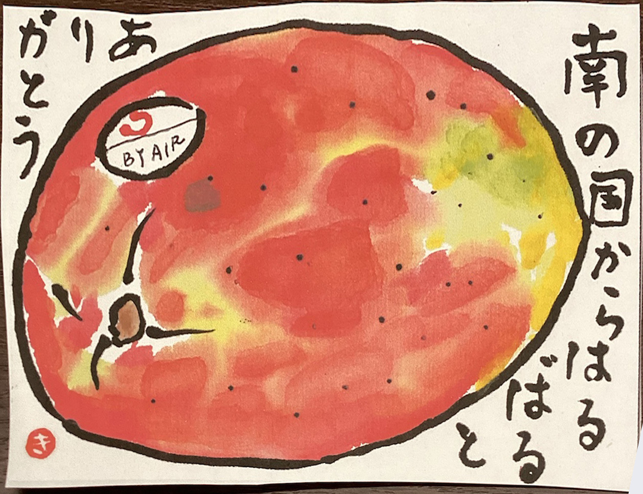 写真は宮崎にちなんでマンゴーの絵手紙です^^