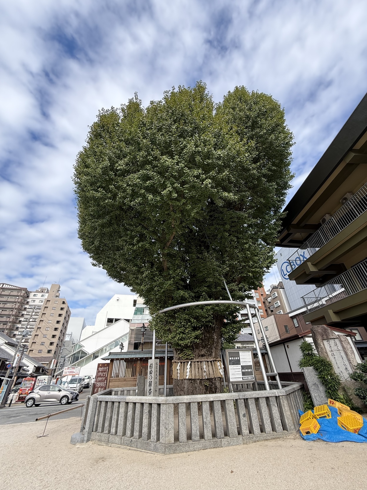 クリニック近くの櫛田神社はイチョウの木が御神木です。その中でも「櫛田のぎなん」と呼ばれる大木は樹齢千年とも言われ長寿延命のシンボルとされているそうです。博多祝い唄にも「さても見事な櫛田のぎなん」と唄われ昔から町のみんなに愛されています。