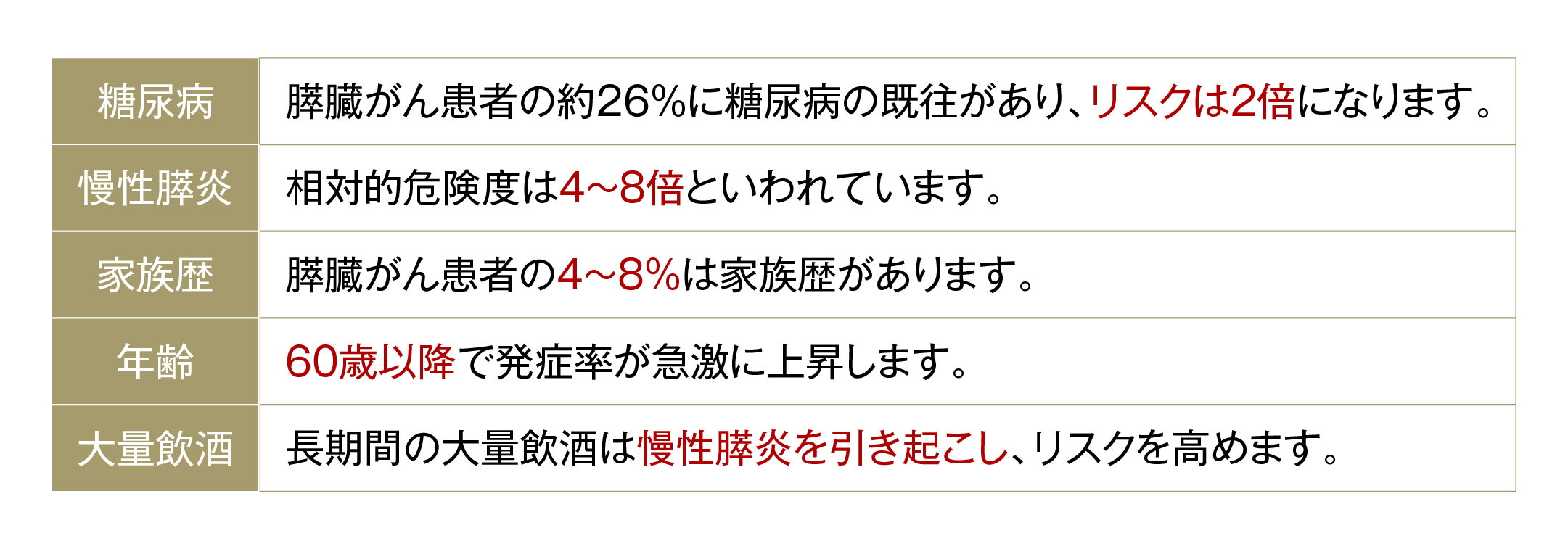 膵臓がんの明確な原因は完全には解明されていませんが、いくつかのリスク要因が明らかになっています。科学的根拠に基づいた主なリスク要因を以下に示します。
