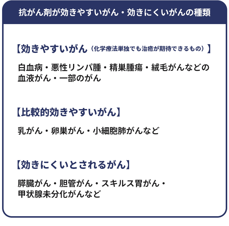 抗がん剤が効きやすいがん・効きにくいがんの種類