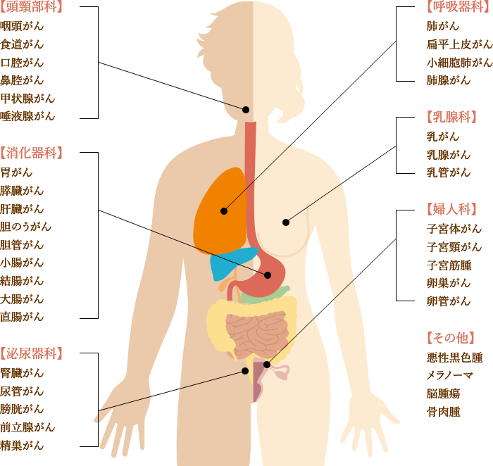 また、6種複合免疫療法の大きな特徴として、さまざまな部位のがんに対応できるという点があります。