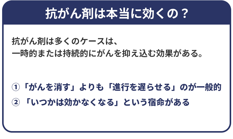 ①「がんを消す」よりも「進行を遅らせる」のが一般的