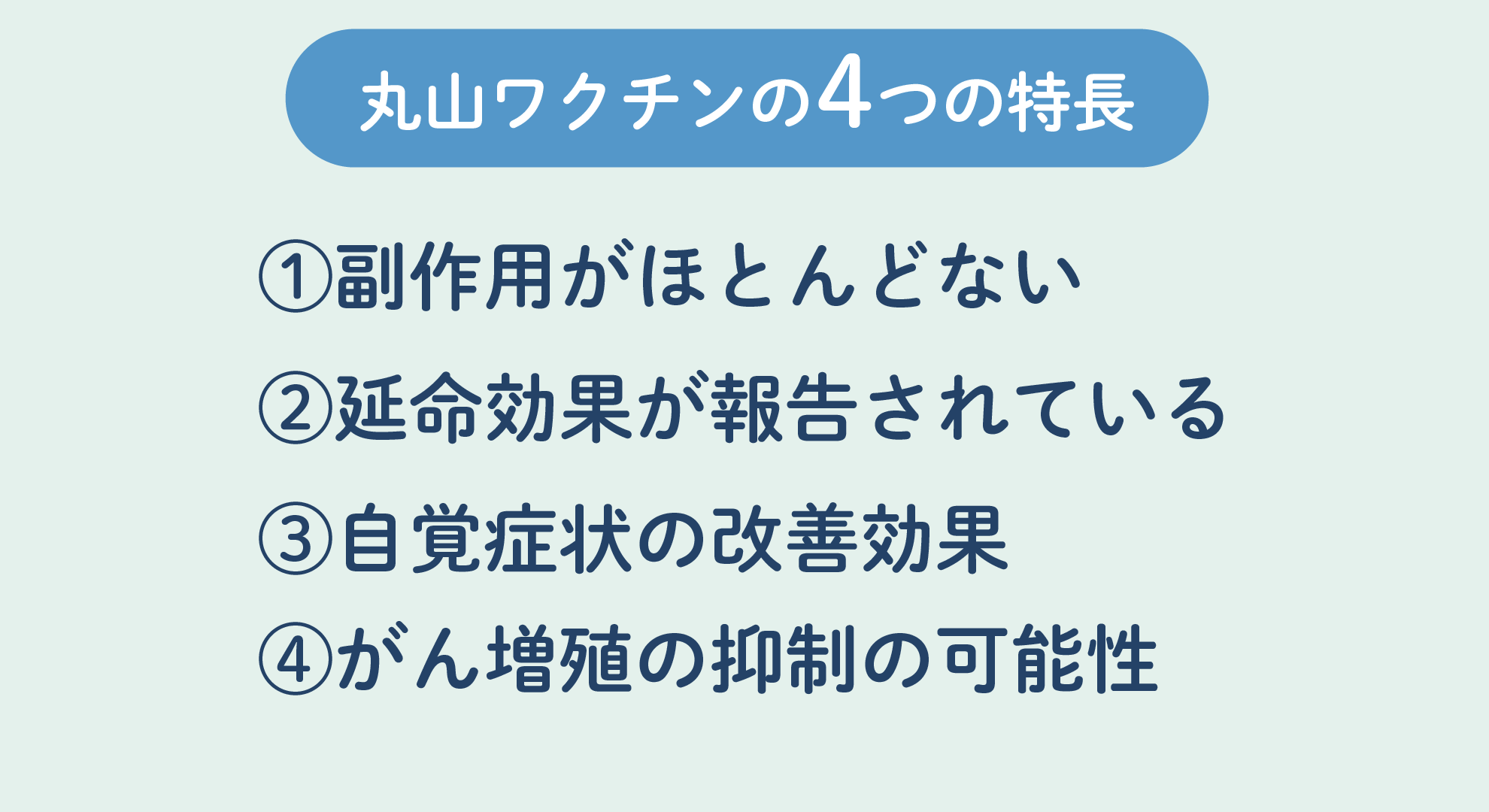 丸山ワクチンは1944年に日本で生まれた独自の免疫療法で、副作用の少なさと長期間使用できる点が大きなメリットです。